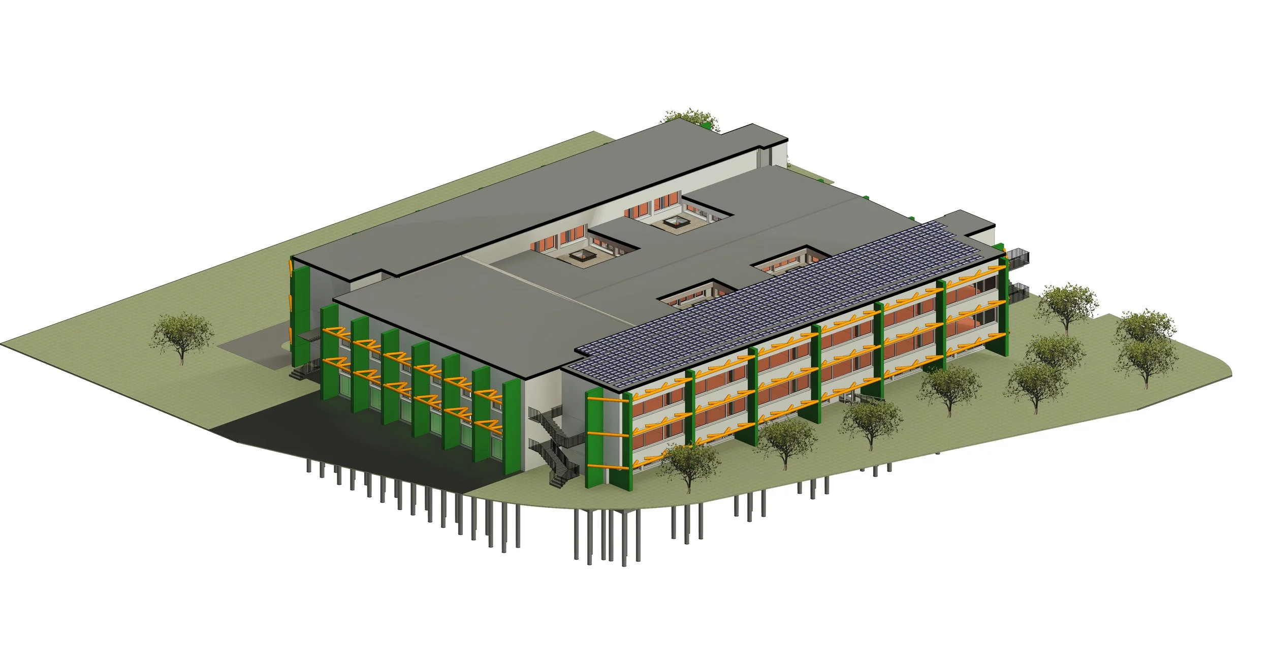 Il progetto è stato sviluppato mediante metodologia BIM per il coordinamento interdisciplinare. Intervento finalizzato all’incremento della sicurezza strutturale e al miglioramento delle prestazioni energetiche dell’involucro.