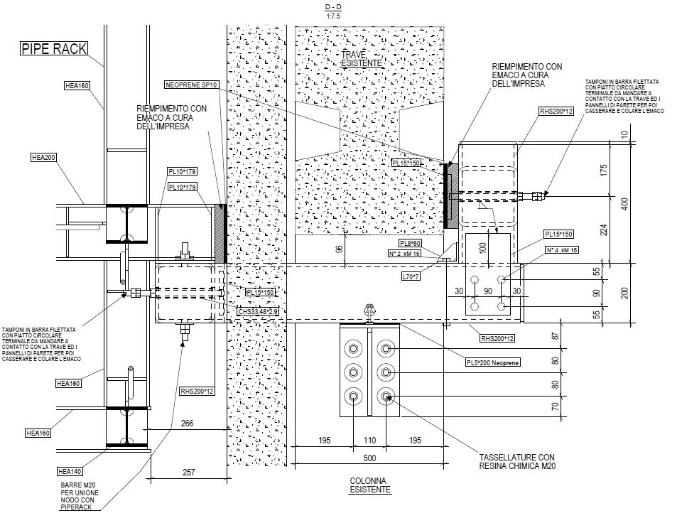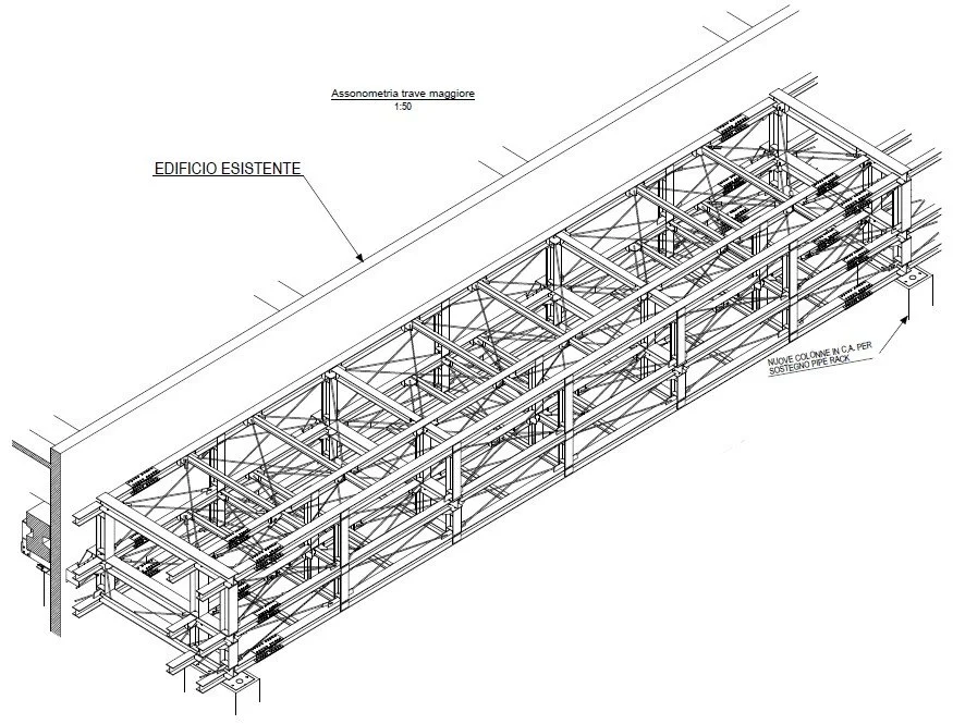 Integrazione funzionale dell’esoscheletro con funzione di supporto impiantistico (pipe-rack)