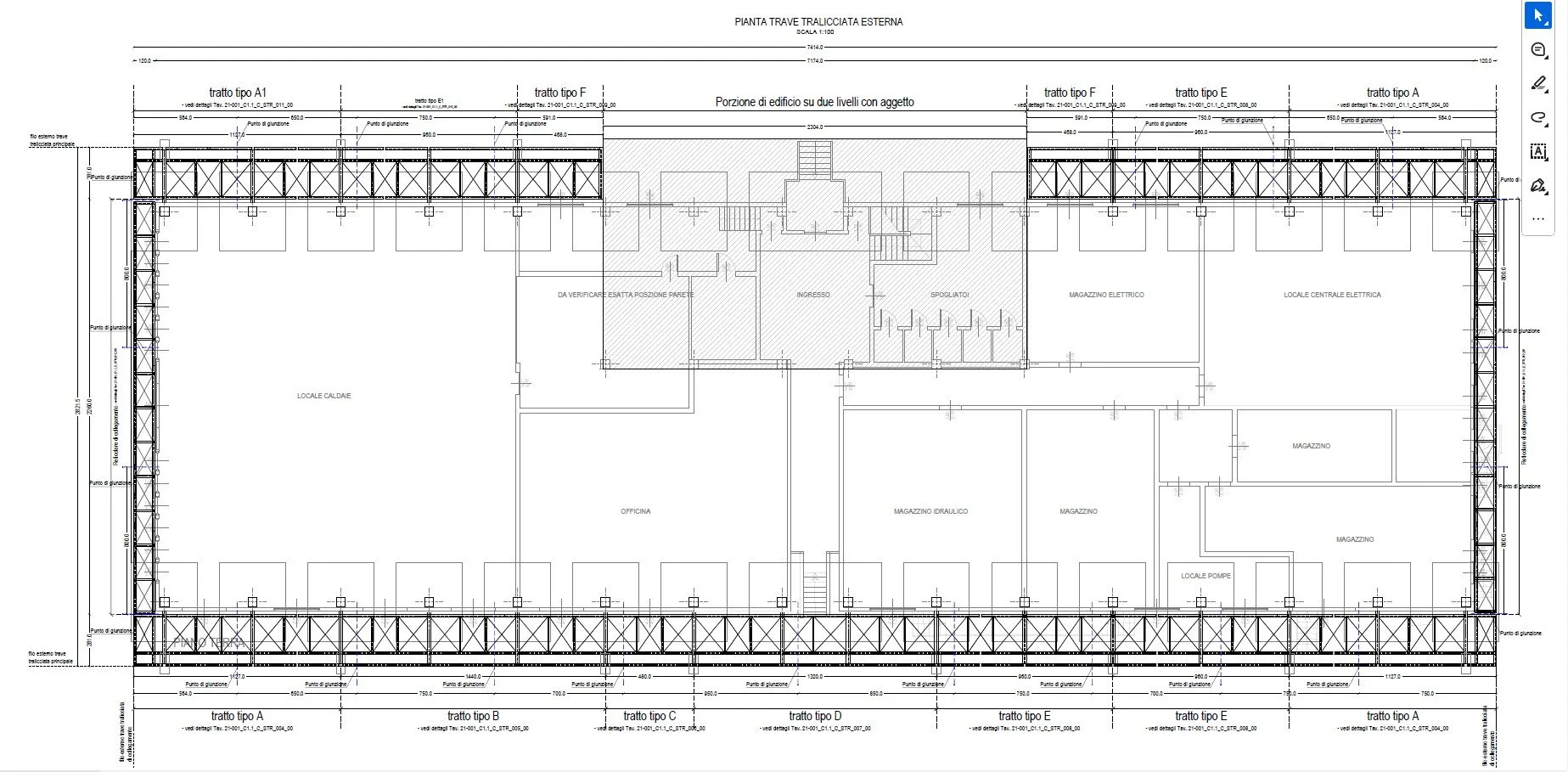 A causa dell’impossibilità di operare con interventi invasivi all’interno dell’edificio, sia per vincoli funzionali sia per la necessità di garantire la continuità delle attività tecniche, il progetto ha previsto la realizzazione di un nuovo esoscheletro strutturale esterno, capace di migliorare il comportamento sismico globale dell’edificio senza interferire con le strutture e gli impianti esistenti.