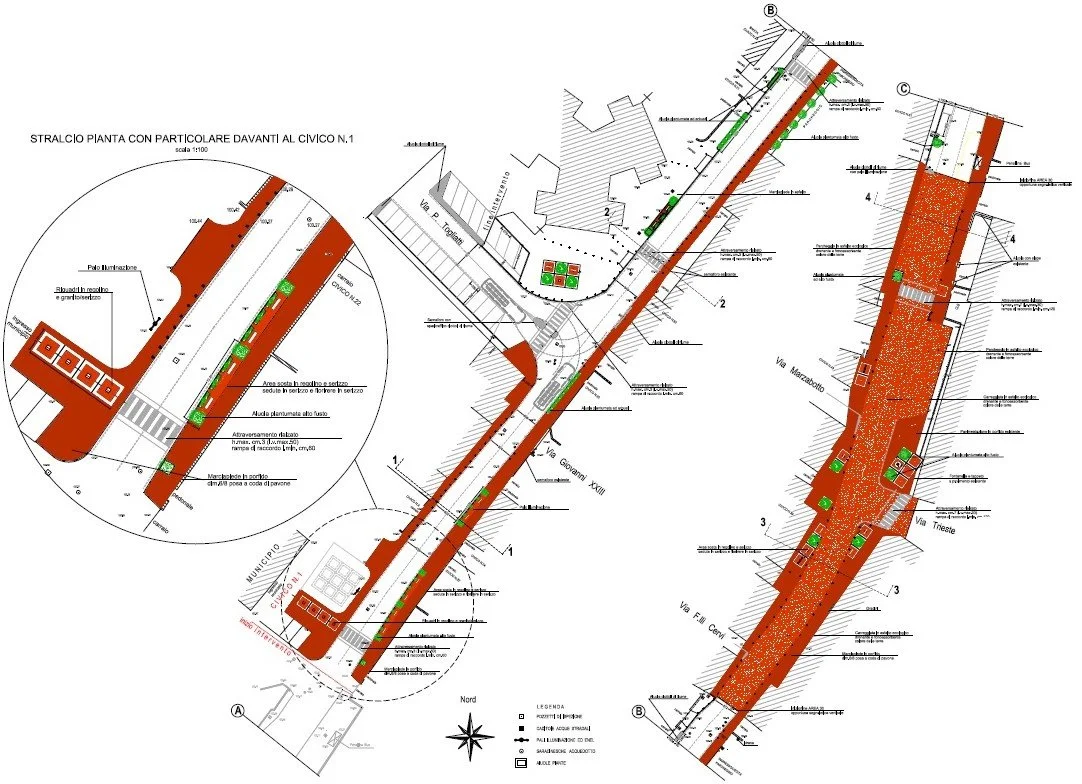 Il progetto si inserisce in un più ampio processo di valorizzazione degli spazi pubblici comunali, con l’obiettivo di migliorare la qualità urbana, la sicurezza dei pedoni e la continuità con le porzioni di via già riqualificate.