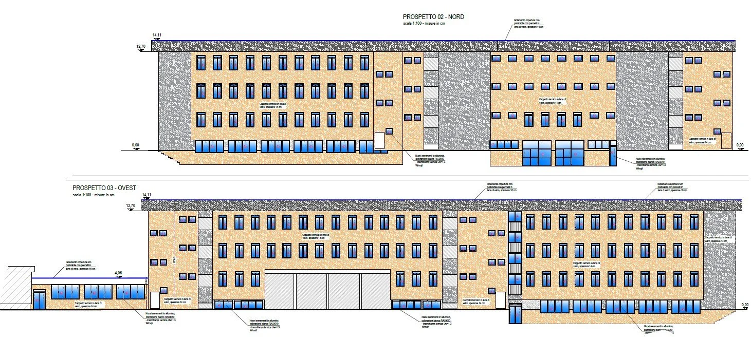 Gli interventi sono stati concepiti per essere eseguiti prevalentemente dall’esterno, riducendo le interferenze con le attività scolastiche e migliorando al contempo la qualità architettonica complessiva dell’edificio.