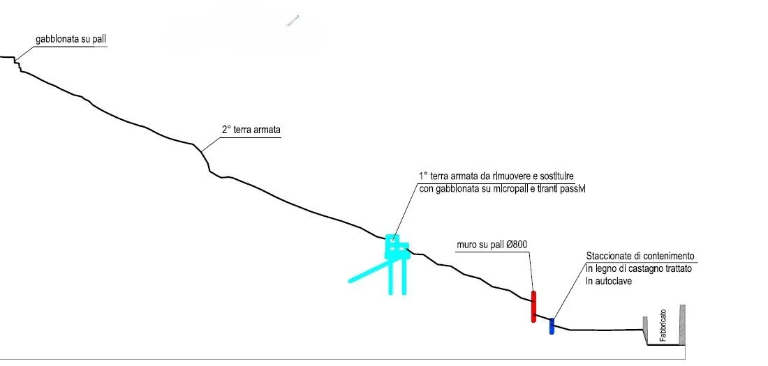 Inserimento di barriera in gabbioni metallici in sostituzione della terra armata collassata