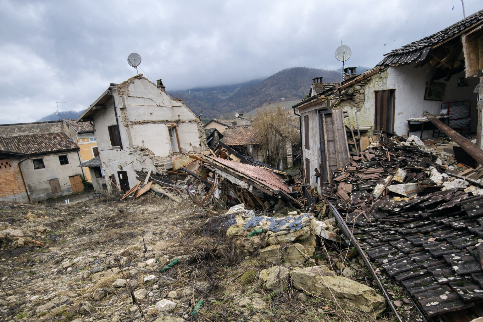 Progettazione per la rimozione delle macerie derivanti dal collasso degli edifici a valle della frana